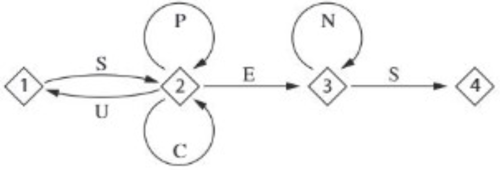 Déterminer le nombre de codes de 4 lettres reconnus par le graphe.